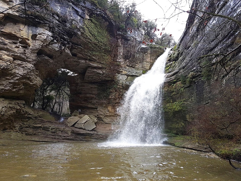 A l’extrem del torrent de Sant Julià, que travessa la vall de la Rotllada, hi ha el salt de la Foradada. A la banda esquerra d’aquest salt d’aigua claríssima, s’hi obre una enorme cavitat natural molt ben posada, una pedra despullada amb un forat molt gran, pel qual un genet muntant un cavall pot passar sense cap dificultat. (Aquest lloc deu el seu nom a aquesta grandiosa portalada natural.) I cal tenir en compte que aquest forat, en un temps molt reculat, hauria servit per posar a prova la virginitat de les noies de la contrada: la noia que hi passava, sense ensopegar el forat ni rebre-hi cap mal, demostrava la veritat de la seva castedat. Heus aquí que, d’aquest lloc tan singular i conegut, en sorgeix la llegenda següent: