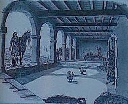 L’Hostal del Grau rep el nom del lloc on ha estat edificat, perquè és molt, molt a prop del Grau d’Olot. (Tos sabem que un grau –del llatí gradus, que vol dir “pas”-és un camí a través d’un cingle que permet assolir-ne la part superior.) Els orígens d’un primer edifici, potser fortificat, cal cercar-los al segle XIV, una fortificació depenent del castell de Bas. (Restes de torres i espitlleres així ho testimonien.) Però l’hostal no s’esmenta fins al segle XVIII, quan els hostalers foren testimonis d’accions de la Guerra de Successió. La casa del Grau va ser reformada pel senyor Manuel Garganta just acabada la Guerra del Francès (1815), que hi bastí un doble pis de cinc arcades a la façana sud. Unes arcades, per davant de les quals discorria la calçada del camí ral, com es pot veure a l’escena ambientada vers 1820-1830.