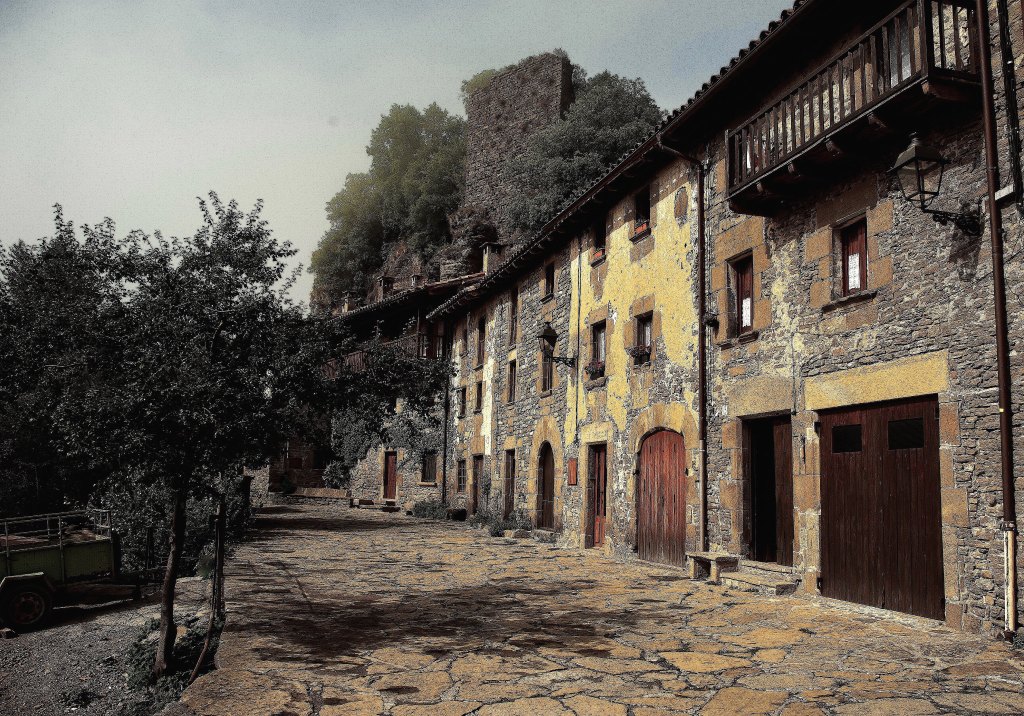 Rupit. Som a la plaça de Coll de Castell, a la part alta del poble. Plaça oberta, ben assolellada, tranquil·la, cap botiga amb rètol, talment un carrer ample, on no es permet el trànsit rodat ni tampoc aparcar-hi. Plaça de forma allargada, amb cases d’arquitectura noble, de façanes molt boniques, fustam als balcons i, a les finestres, blanques cortinetes de ganxet que enamoren. Hi ha una font de pedra ben bonica arran de terra, també, que raja fresca. El ple de cases és al costat sud de la plaça; a l’altre costat, la plaça és oberta amb uns horts petits que s’estenen avall, avall, fins al torrent del Saltiri. Rupit és un poble molt net. I aquest lloc és agradable, endreçat, ben tingut i treballat. Les coses com siguin. Que en són de bonics, els horts! I el castell, on és? Ah! Del castell, no en queda res. Només un pany de paret damunt del gran rocam, que domina la població.
