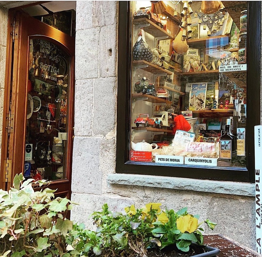 En aquesta esplèndida botiga tot està endreçat, tot és al seu lloc. Les coses com siguin. Un taulell de fusta de roure envernissat, que és l’original, de quan es va inaugurar la botiga, cap a l’any 1850, al cap del qual veiem un molinet de moldre cafè, ben gran, ben antic. Hi ha bona ratafia, també. (Ei!, Maria Estrella, vull ratafia, i de la vostra, de la bota del racó.) La Maria Estrella sempre ofereix de tastar-la, la ratafia. Carquinyolis. Pets de monja. Mel de la regió. Mel de bruc. Mel de romaní. Els turistes també hi pul·lulen. Mira: la mainada omple de somriures la botiga en veure la joguina desitjada. Un nen, una nena. Ulls d’il·lusió. L’arc (Pare, per què no em compres l’arc?) L’espasa de fusta. L’os de peluix de tacte suau, agradable. La bruixa de la salut. La bruixa de la sort. La fada màgica, dotada de poders sobrenaturals i vestida amb robes de colors ben vius. El caganer del pessebre. Les llaminadures. Ara, cal dir-ho tot: la botiga són les persones que hi entren, que miren i que hi compren. I el tracte envers el client hi és sempre exquisit. Tot això és admirable. En aquest lloc descobreixen que hi poden trobar gairebé de tot. És així això.