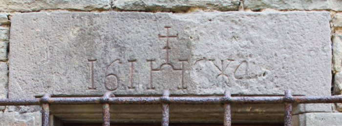 El costum de gravar les inscripcions en llatí era força habitual quan hi havia alguna persona que el sabia. Aquesta inscripció, tal com la veiem, està incompleta. Al poble de Santa Pau, a la llinda de can Piu, llegim la inscripció següent: